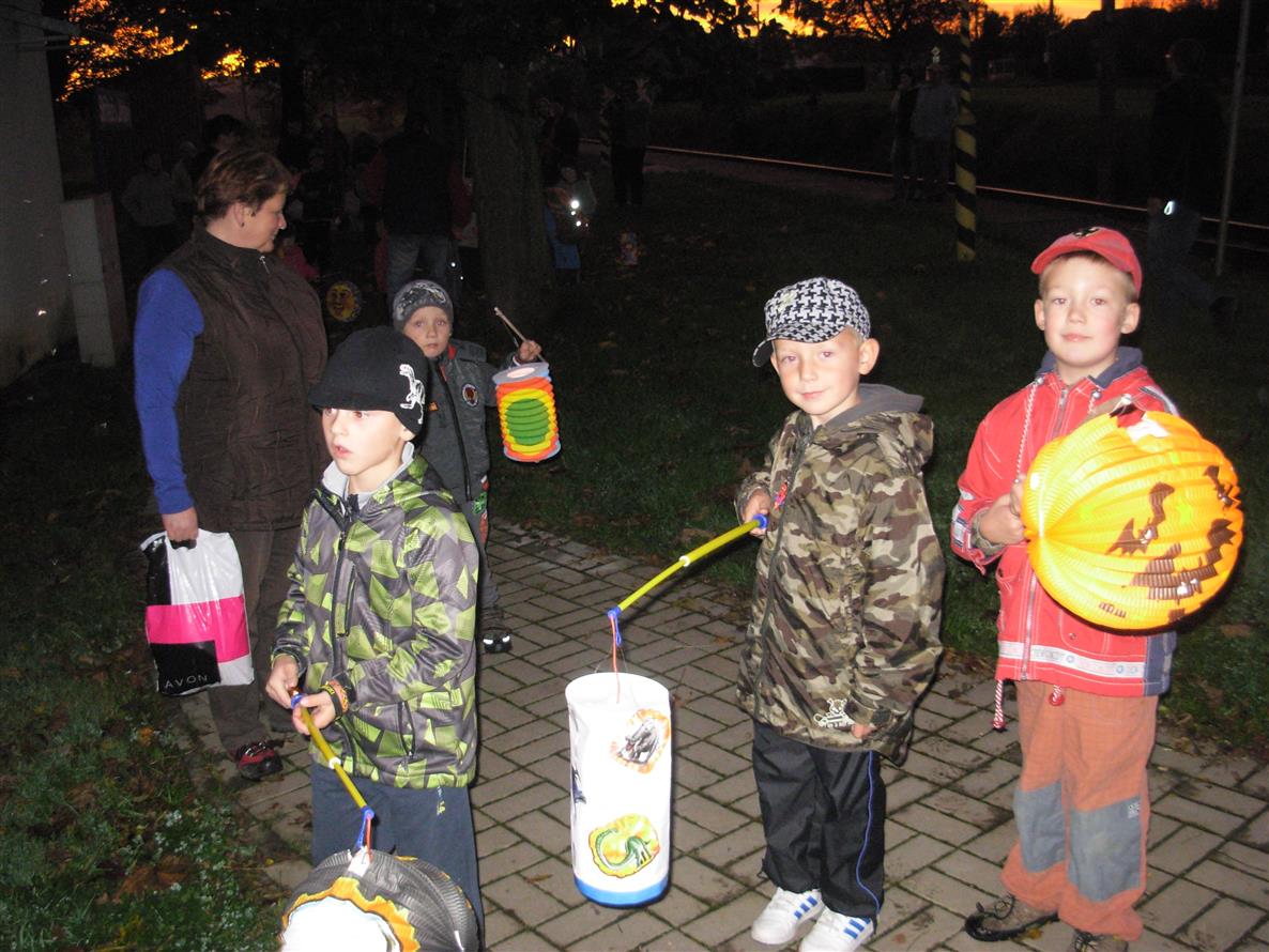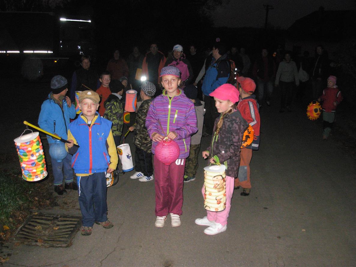 V sobotu 18. 10. 2014 uspořádala Mateřská škola "Odlet světlušek". Již tradiční lampiónový průvod se vydal ze zastávky vlakového nádraží na fotbalové hřiště, kde byla možnost opéct si špekáček.