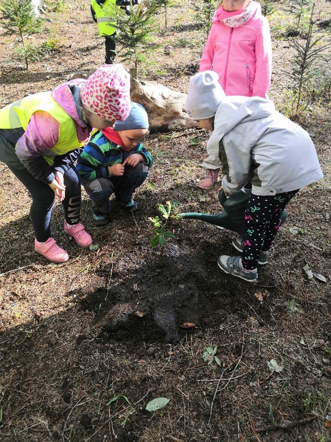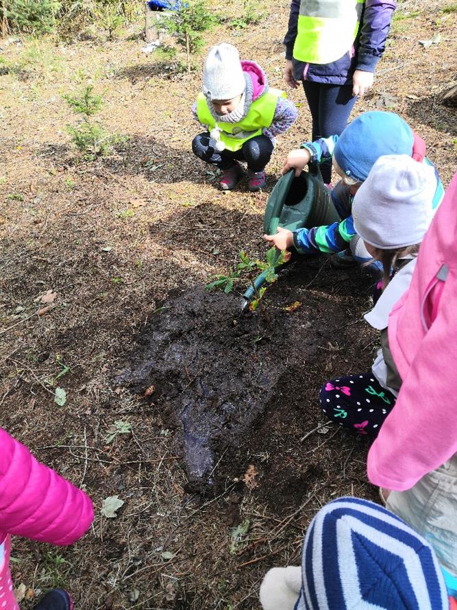 V roce 2017 byl dětmi z Mateřské školy v blízkém lese vysazen javor a lípa.