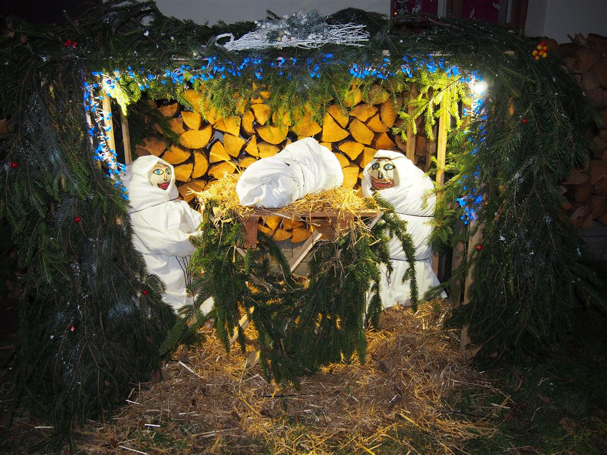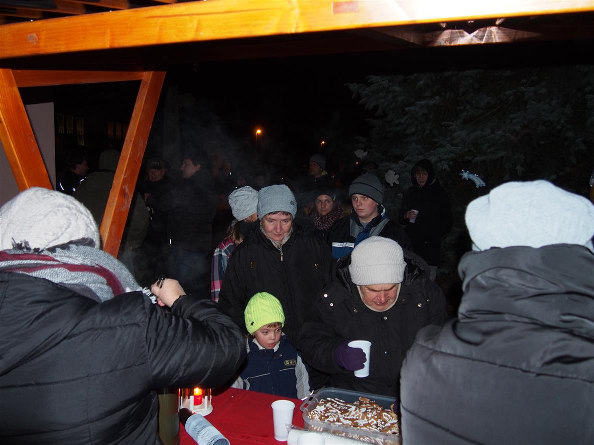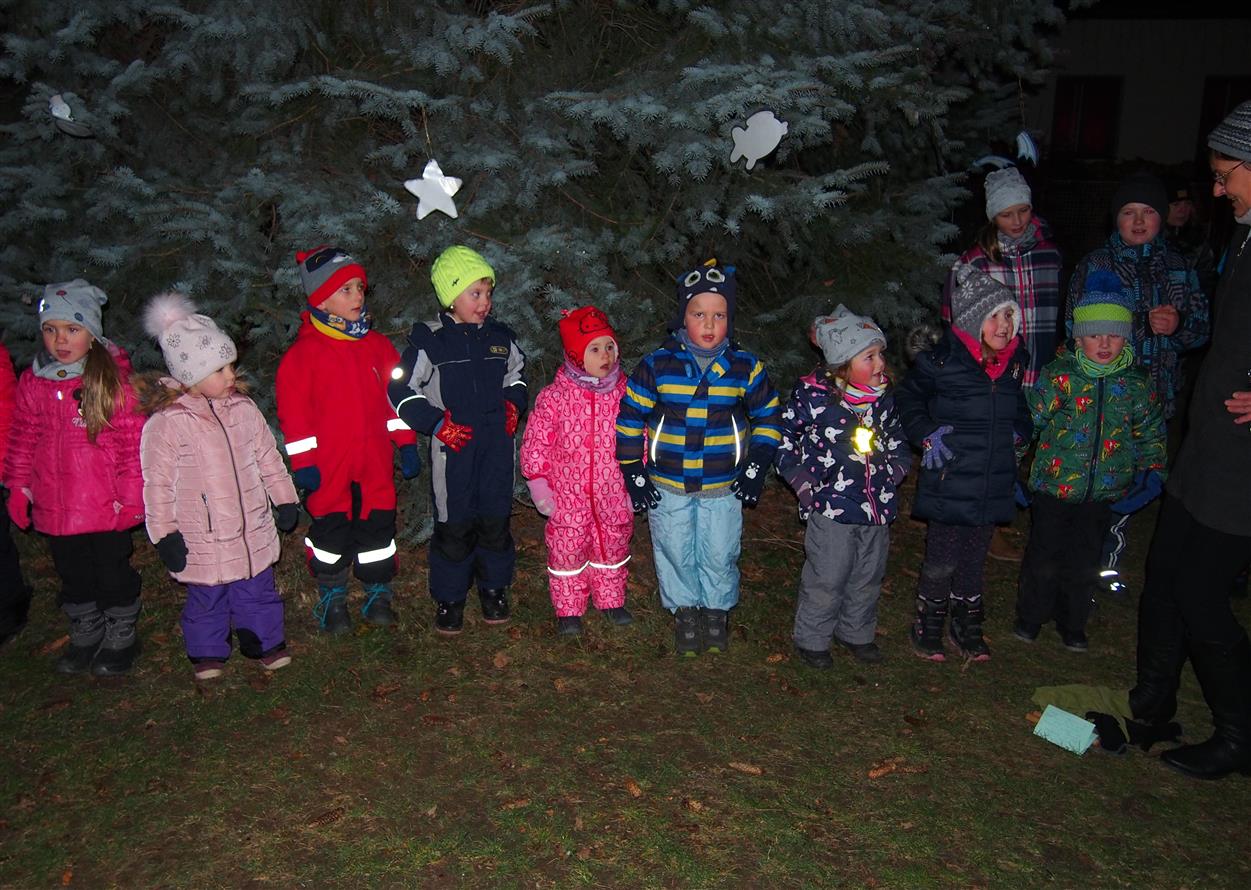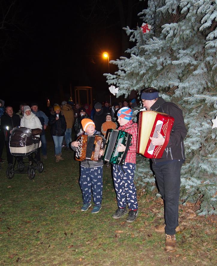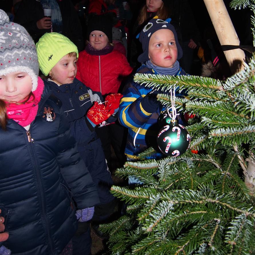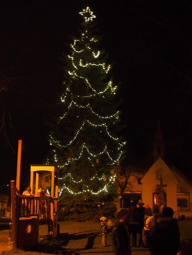 Děti ze školky poprvé ozdobily letos vysazený budoucí vánoční strom. Otec a synové Dvořákovi společně zahráli na harmoniky koledy a vánoční písně. A byl rozsvícen vánoční strom.
