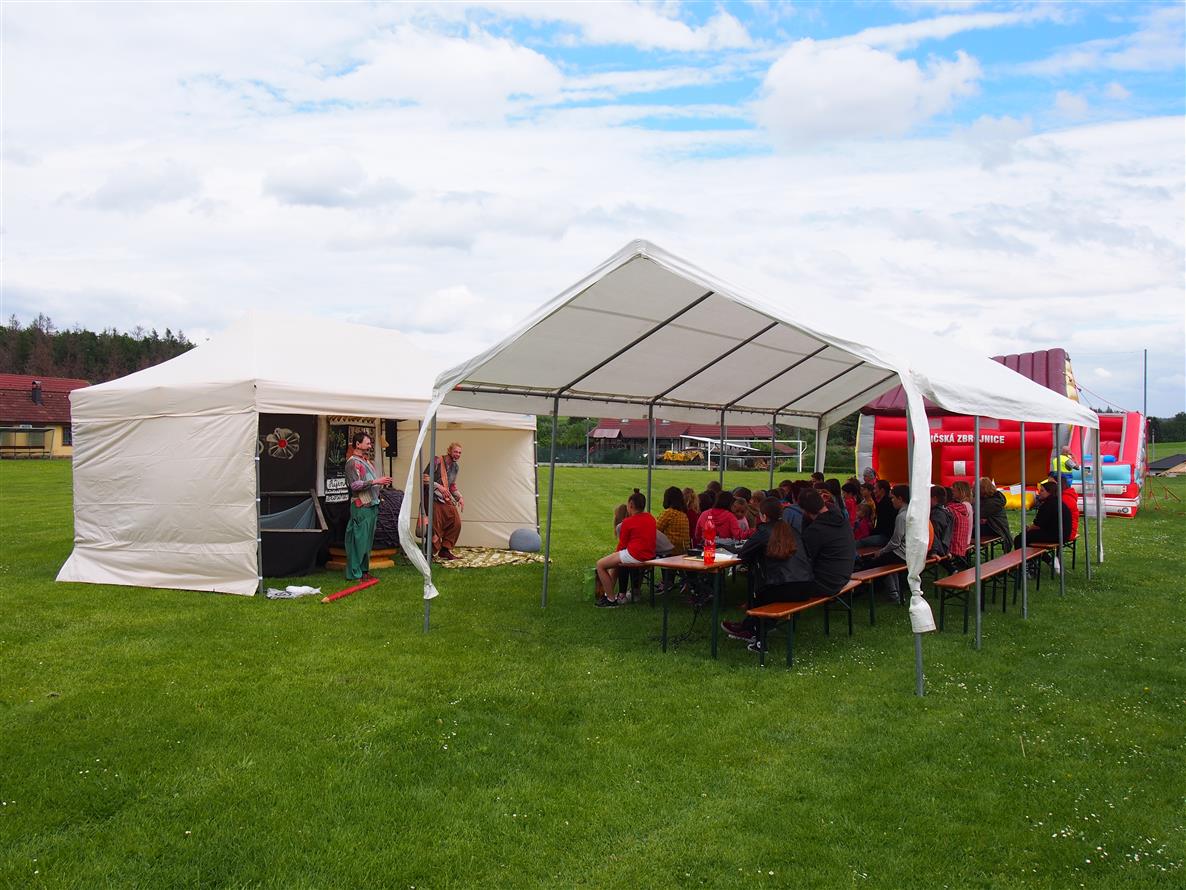 Na programu bylo nejprve moc pěkné divadelní představení "Kouzla skřítků" v podání divadla NA VĚTVI. Pak byl pro děti přichystán skákací hrad se skluzavkou a soutěže se sladkou odměnou. Bylo možné si prohlédnout i hasičské auto. Nechybělo ani občerstvení. Nestálé počasí nám přálo. Bouřka s lijákem přišla až hodinu po oficiálním ukončení akce.