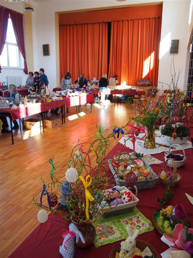 Své výrobky zde vystavily i děti z Mateřské školy, pro děti i dospělé bylo připraveno různé tvoření, nechyběla ani ukázka pletení velikonoční pomlázky, prodejní stánky a drobné občerstvení. Na výstavu zavítalo přes 100 návštěvníků.
