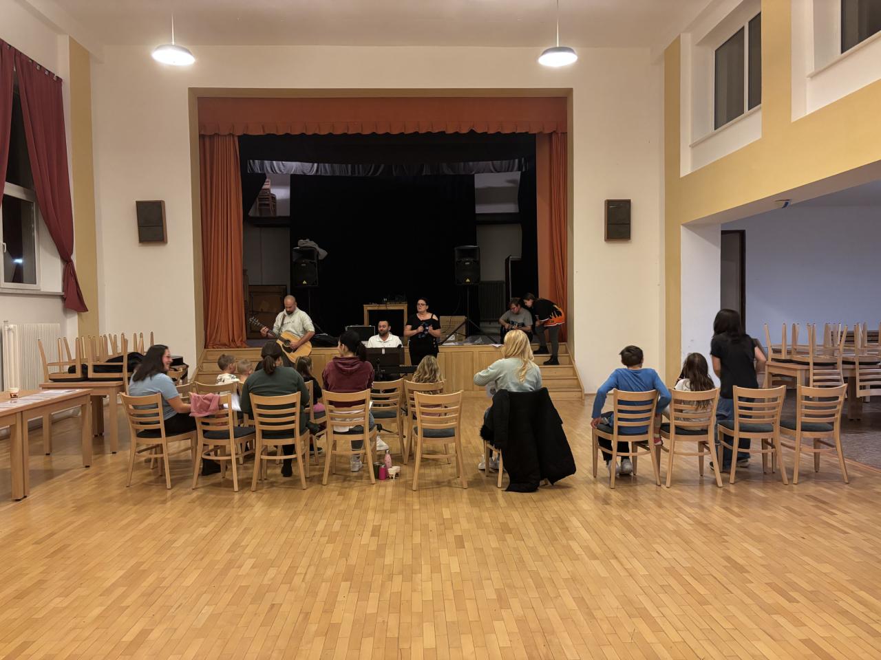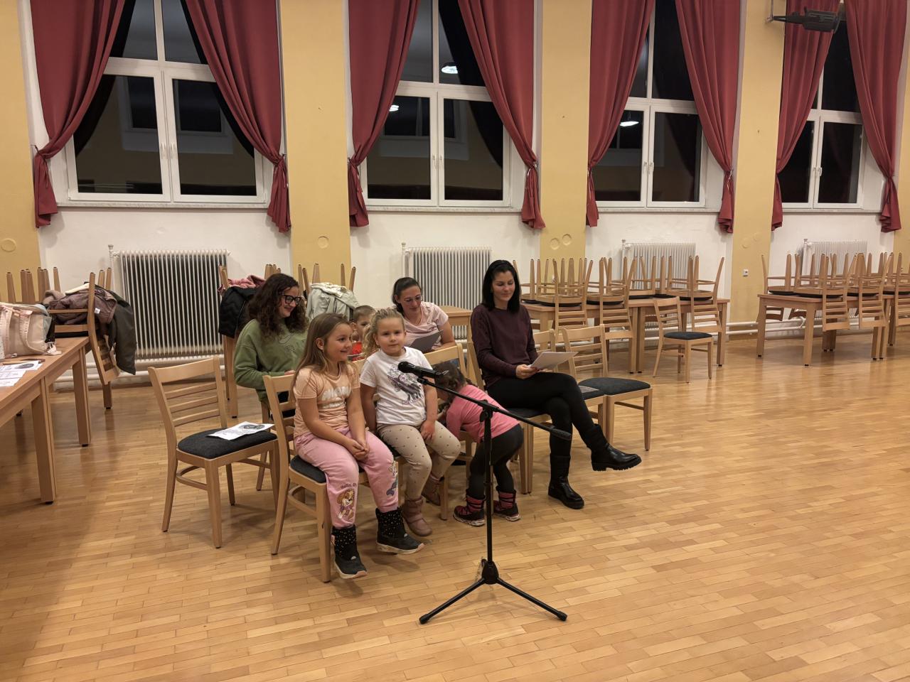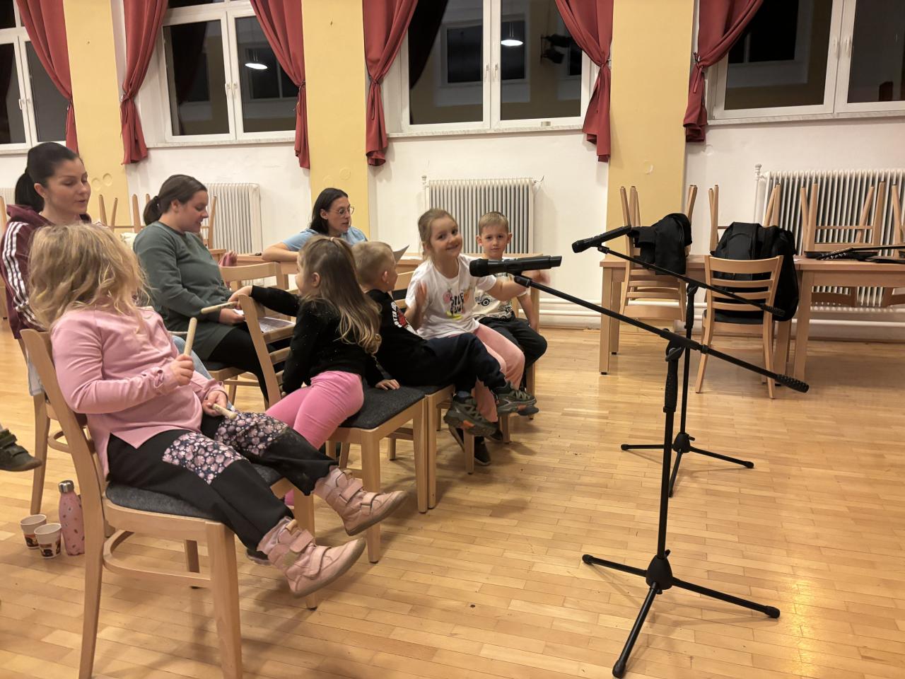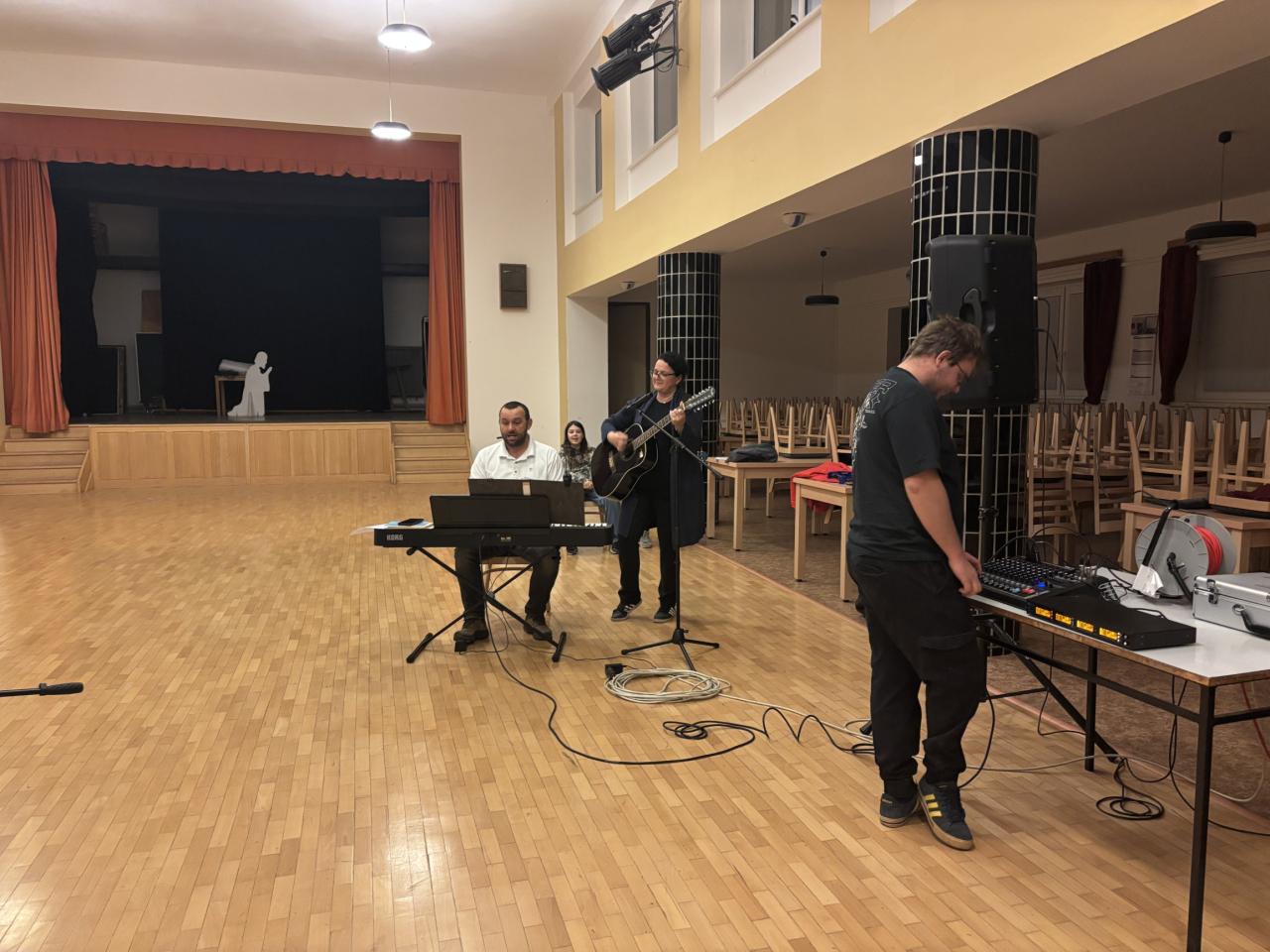 Děti i dospělí se každý čtvrtek scházejí pod vedením Zbyňka a Verči, aby si zazpívali vánoční koledy, které pak budou zpívat při slavnostní akci Rozsvícení vánočního stromu.